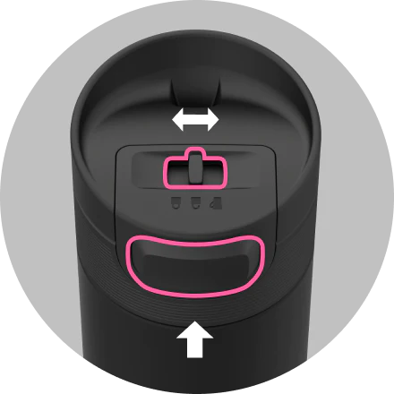 Nuestra tapa 3 en 1 inteligentemente diseñada con tecnología Snapclean® tiene tres posiciones. Simplemente presione el control deslizante para habilitar las diferentes posiciones.